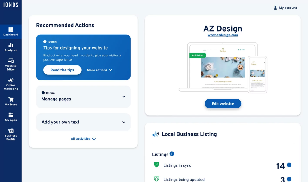 IONOS has positioned itself as the go-to “speed-to-market” platform in 2026. Its AI Website Builder is specifically designed for beginners who need to launch a professional site without the steep learning curve of advanced platforms. By combining an intuitive AI setup wizard with built-in competitor tracking (marketingRadar) and automated SEO tools, IONOS provides a streamlined, secure, and incredibly affordable ecosystem for local businesses, portfolios, and booking-based services.